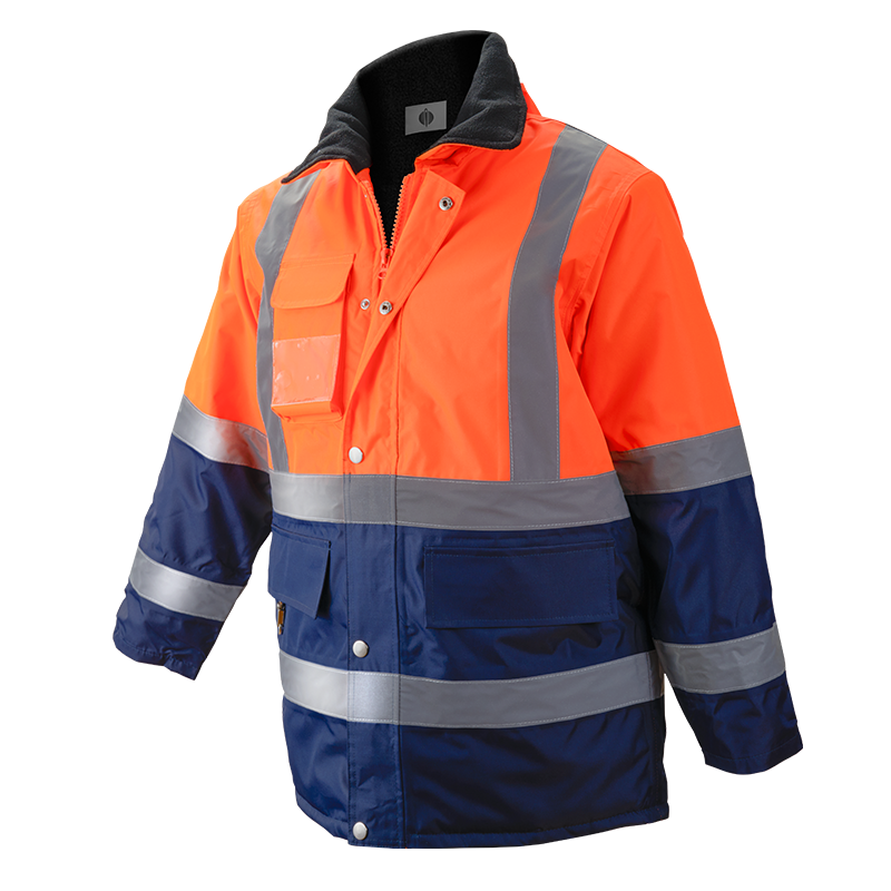 • 2 bandas reflectantes continuas en cuerpo y mangas