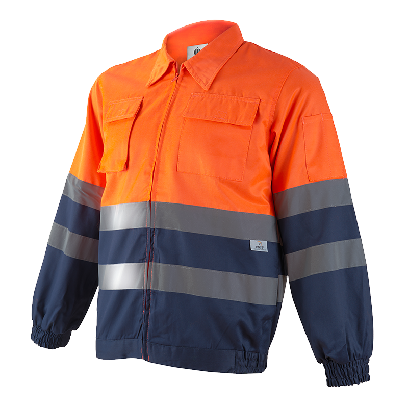 Sarga flúor de 260 g/m2 (40% poliéster y 60% algodón). Contraste de 200 g/m2 (65% poliéster y 35% algodón).