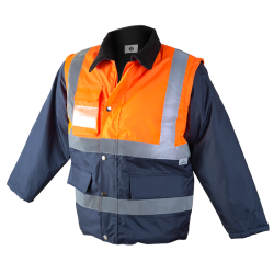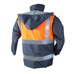 • 2 bandas reflectantes continuas en cuerpo y mangas