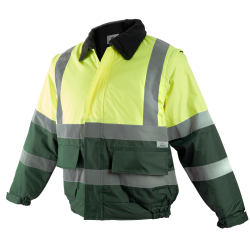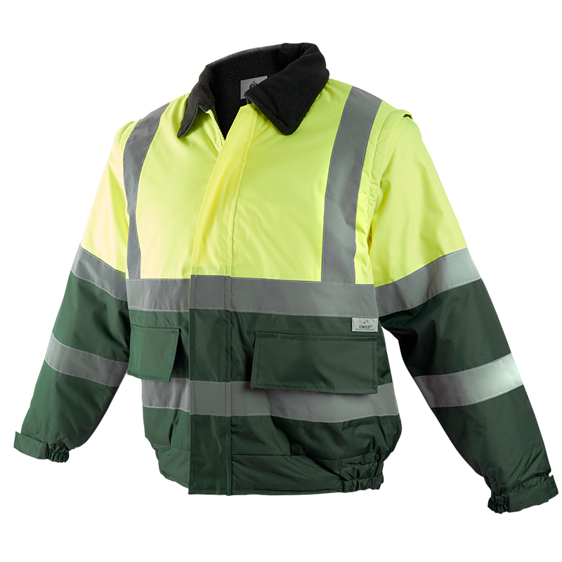 • 2 bandas reflectantes continuas en cuerpo y mangas