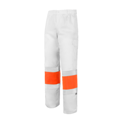 Sarga flúor de 260 g/m2 (40% poliéster y 60% algodón). Tejido de contraste sarga de 200 g/m2 (65% poliéster y 35% algodón).