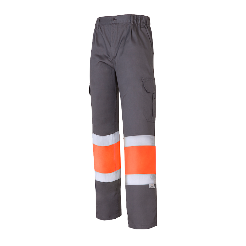 Sarga flúor de 260 g/m2 (40% poliéster y 60% algodón). Tejido de contraste sarga de 200 g/m2 (65% poliéster y 35% algodón).