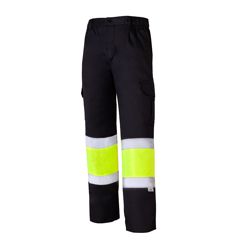 Sarga flúor de 260 g/m2 (40% poliéster y 60% algodón). Tejido de contraste sarga de 200 g/m2 (65% poliéster y 35% algodón).
