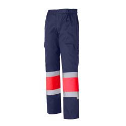 Sarga flúor de 260 g/m2 (40% poliéster y 60% algodón). Tejido de contraste sarga de 200 g/m2 (65% poliéster y 35% algodón).