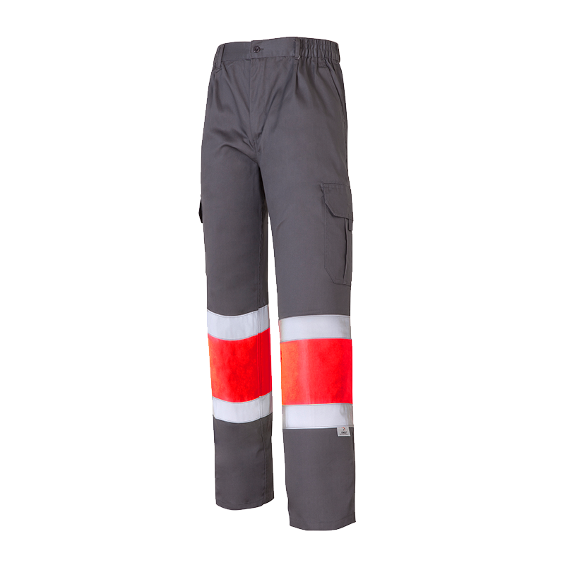 Sarga flúor de 260 g/m2 (40% poliéster y 60% algodón). Tejido de contraste sarga de 200 g/m2 (65% poliéster y 35% algodón).