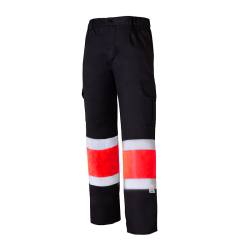 Sarga flúor de 260 g/m2 (40% poliéster y 60% algodón). Tejido de contraste sarga de 200 g/m2 (65% poliéster y 35% algodón).