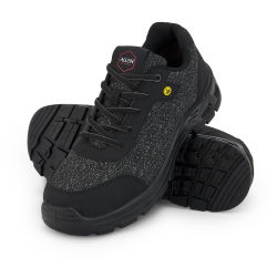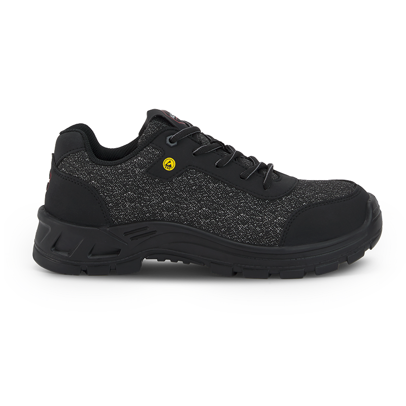 Tejido y refuerzos de microfibra, cordones de poliamida de alta resistencia, suela de PU de doble densidad, puntera de composite y plantilla antiperforación textil. Incluye plantilla confort antiestática de foam y gel de fácil limpieza, antibacteriana y con diseño ergonómico.